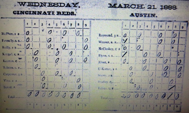 He signed with the Austin Senators in the newly formed Texas League in 1888. In March, Bradley caught for Austin in two exhibition games with the Cincinnati Red Stockings of the American Association—the Statesmen lost the first game 2-0, but won the second 3-0.