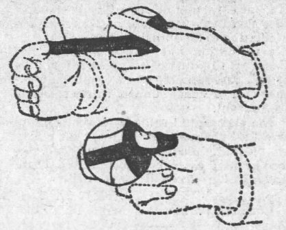 “Mr. Jones provides means in this case readily attachable to the hand for causing a ball to curve when thrown from the hand. A vacuum cup is held in position by a band made of a size to fit a finger, but is preferably made of a size to fit two or more fingers so that the cup may be shifted or adjusted nicely to any point for giving a great or small curve, or various kinds of curves.”