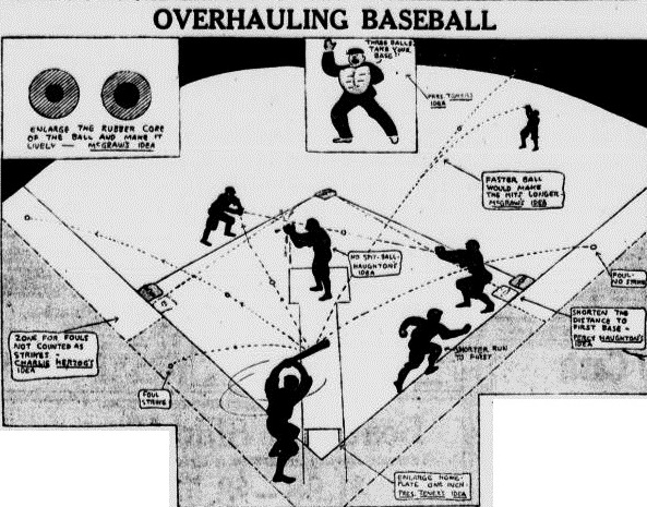 The most practical suggestion came from Giants Manager John McGraw, who proposed that no rules be changed, but advocated a more lively ball.