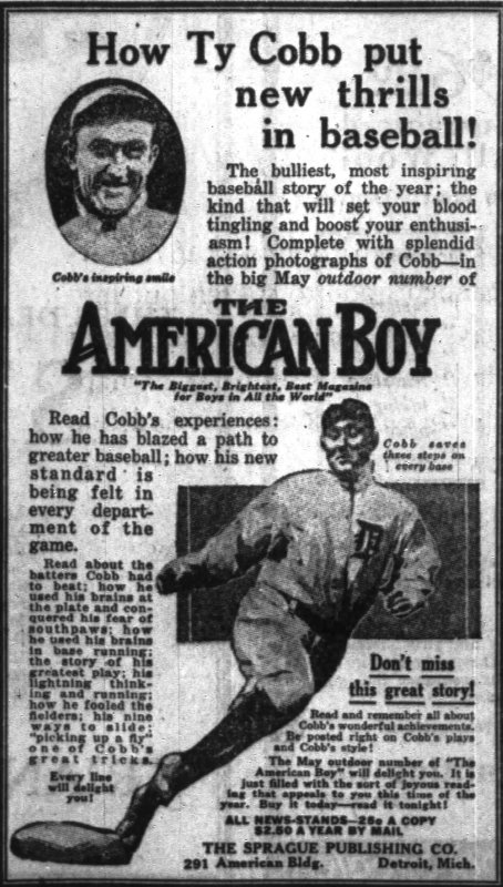 Lost Advertisements–Ty Cobb ‘The American Boy”