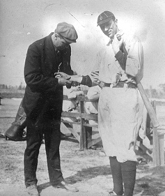 Trainer (and detective)  Harry Tuthill with Tigers first baseman Del Gainer