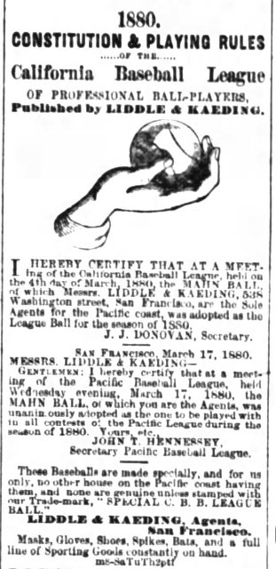 He eventually left Colorado and went to the West Coast where he played a handful of games in 1879 for the San Francisco Mutuals and Oakland Pioneers in the California League. In the spring of 1880 he signed a contract with the Chicago White Stockings.