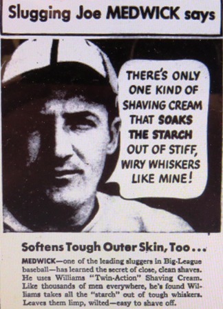 medwickadA 1937 Williams “Twin-Action” Shaving Cream ad featuring that year’s National League Most Valuable Player, Joe Medwick.