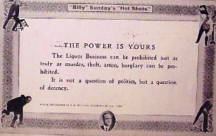 William Ashley “Billy” Sunday, the former outfielder for the Chicago White Stockings, Pittsburgh Alleghenys and Philadelphia Phillies, turned evangelist and temperance supporter was spending the early months of 1908 holding a five-week long  revival in Decatur, Illinois and advocating for citizens throughout Illinois to vote their towns dry during local option elections in April.
