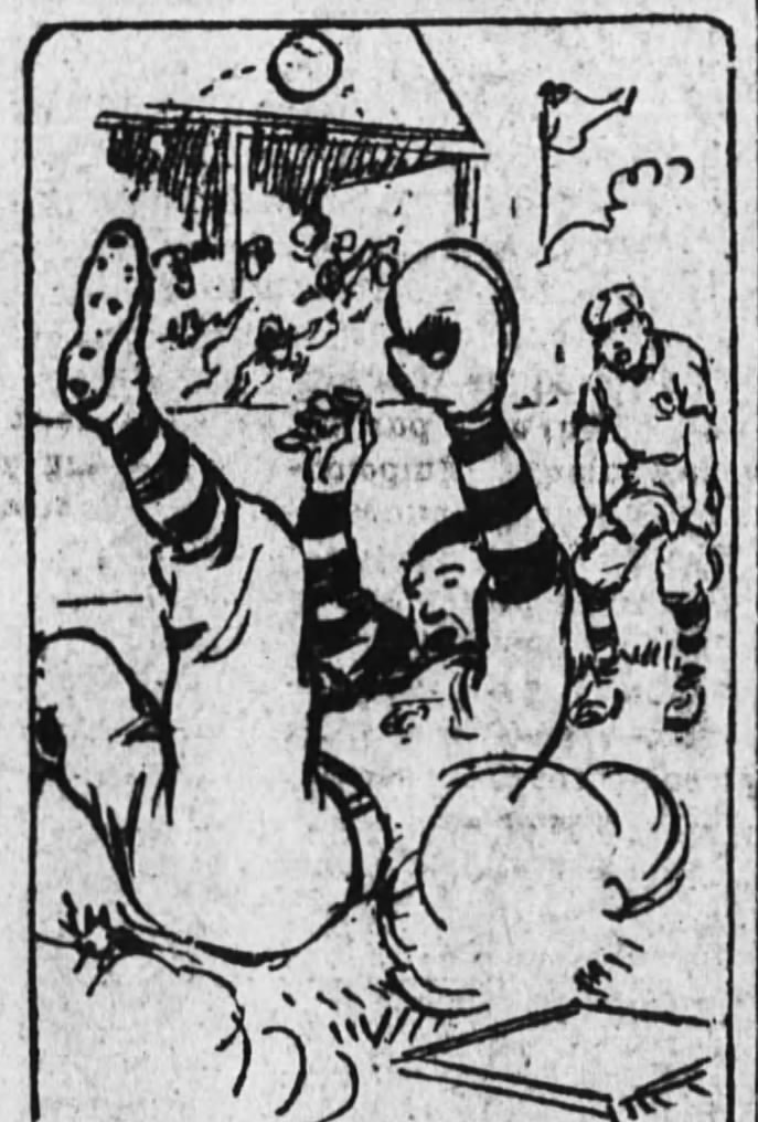 “Instinctively he threw up his feet and hands to protect his face. The ball struck the sole of his shoe, bounded up into the air, and, as it fell again, Em reached out and caught it.